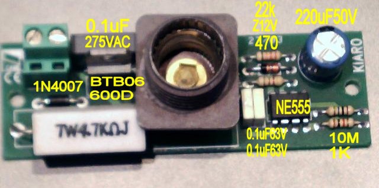 Hello! A 4,7k gyakorlatilag a diódán keresztül megkapja a 230V-ot, úgy hogy nyugodtan rásülhet a kezed, mert ez kb. 5,5W-ot jelent rajta. Leht, hogy a BTB12 Gate árama nagyobb, mint előzőleg ami az áramkörben volt. A Triac-ok érzékenysége változó a négy síknegyedben, ezért előfordulhat, hogy nem mind két félperiódusban gyújt be. De mondjuk ez fél fényerőt (vagy kevesebbet) jelentene. Mérj rá az izzóra mekkora a feszültség rajta, megtudod. Mérd meg az 555 tápfeszültségét is.