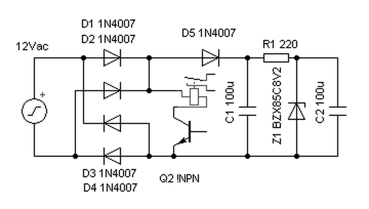 Mert a relének semmi szüksége szűrésre-stabilizálásra. Akkor a trafó lehet 12V-os, az áramkör számára meg egy zénerrel is lehet stabil feszt készíteni..