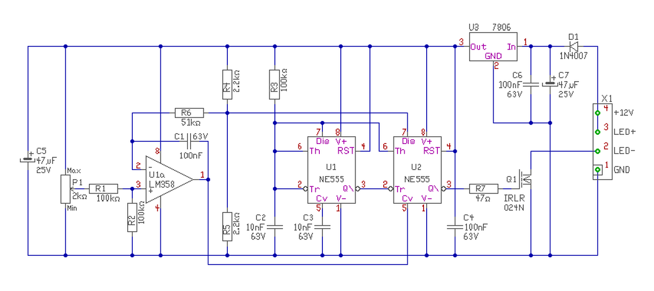 Indexet építek biciklimre, LED-szalaggal és egy 12 voltos fúrógép akkumulátorral. A helyzet az, hogy relét egyelőre nem szeretnék rendelni, mert elég magas áron találtam olyat, ami megfelelő lenne. Erre az IC 555-re egy ismerősöm által találtam rá, szintén az interneten, és sok kapcsolási rajzon és ismertetőn való átrágás után sem állt össze egészen a kép. A helyzet a következő: van egy akkumulátorból kijövő negatív és pozítív szál, és a led szalagnak is ugyanez. Itt hoz zavarba engem az egész: mit és hova kössek be, hogy a LED-ek megfelelően, index-ként villanjanak fel mikor bekapcsolom az indexet? A LED szalag: 12 voltos, 14,4 wattos, és 0,8 amperes Az akkumulátor: 12 voltos! A válaszokat előre is köszönöm! Peti