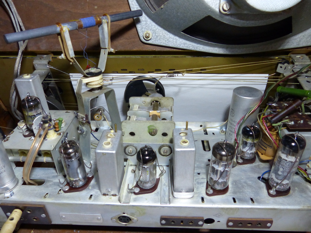 Folytatom a 933-ast. Kicsit komolyabb tisztítás következett a kidobozolás után, majd hidegen leellenőriztem pár dolgot. Mivel a gép valószínűleg évtizedek óta nem volt bekapcsolva, glimmel formáltam az elkókat, hál. zárlatot kerestem, kimostam a kapcsolót, meg a hull váltót kontakt anyaggal stb. Eztán neki a 220., és láss csodát, elsőre megszólalt. Persze, torzított, kihagyott, gerjedt, de jött a Kossuth. Hangfekis csatoló áteresztett, kitrafón a 4.7nF szintén. Ezeket cseréltem a régi házában. Az anódon levő kondit 2db 10 nF ból raktam össze sorba kötve, a nagyobb feszültség tűrés érdekében.
