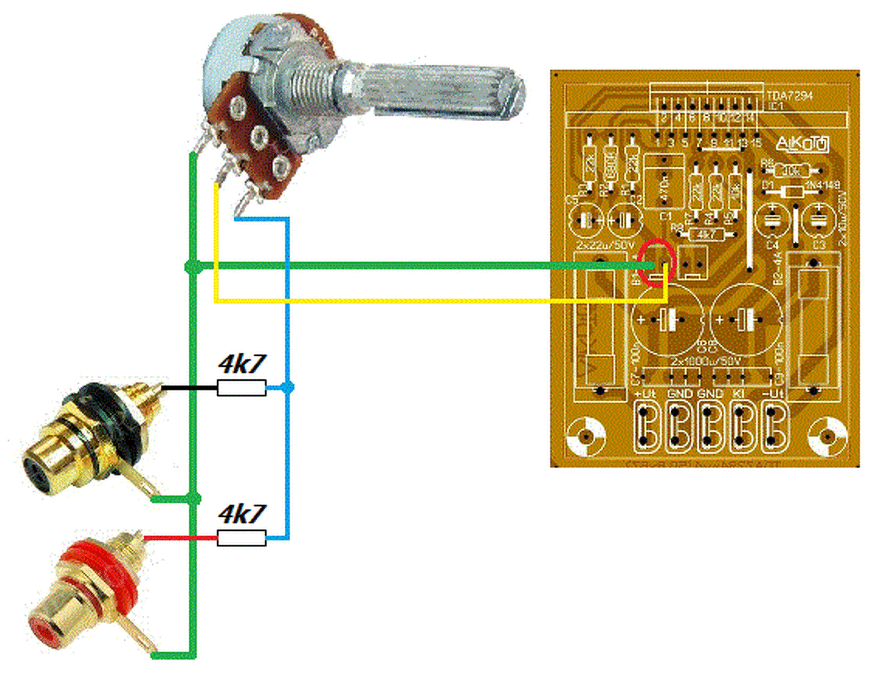 Újabb számomra nem egyértelmű dolog merült fel építés közben. TDA7294 erősítő kapcsolásán az audio jelnek ugyebár van egy föld illetve egy + bemenet. A hangerő szabályzónak pedig egy out egy in (audio jelnek) és egy 0. Az audió jel RCA csatlakozóról jön. Mindegyik kapcsoláshoz csatolok egy képet is. Kérdésem lenne hogyan lehet ezeket össze kötni igazából a 0 bekötése okoz problémát, mert az rca csatlakozónak 3 kimenete van piros , fekete és a test, ebből melyiket hova kötöm a hangerős szabályzón illetve a tda bemenetére 0-ra mit kötök vagy kell e egyáltalán oda valami? Köszönöm segítséget