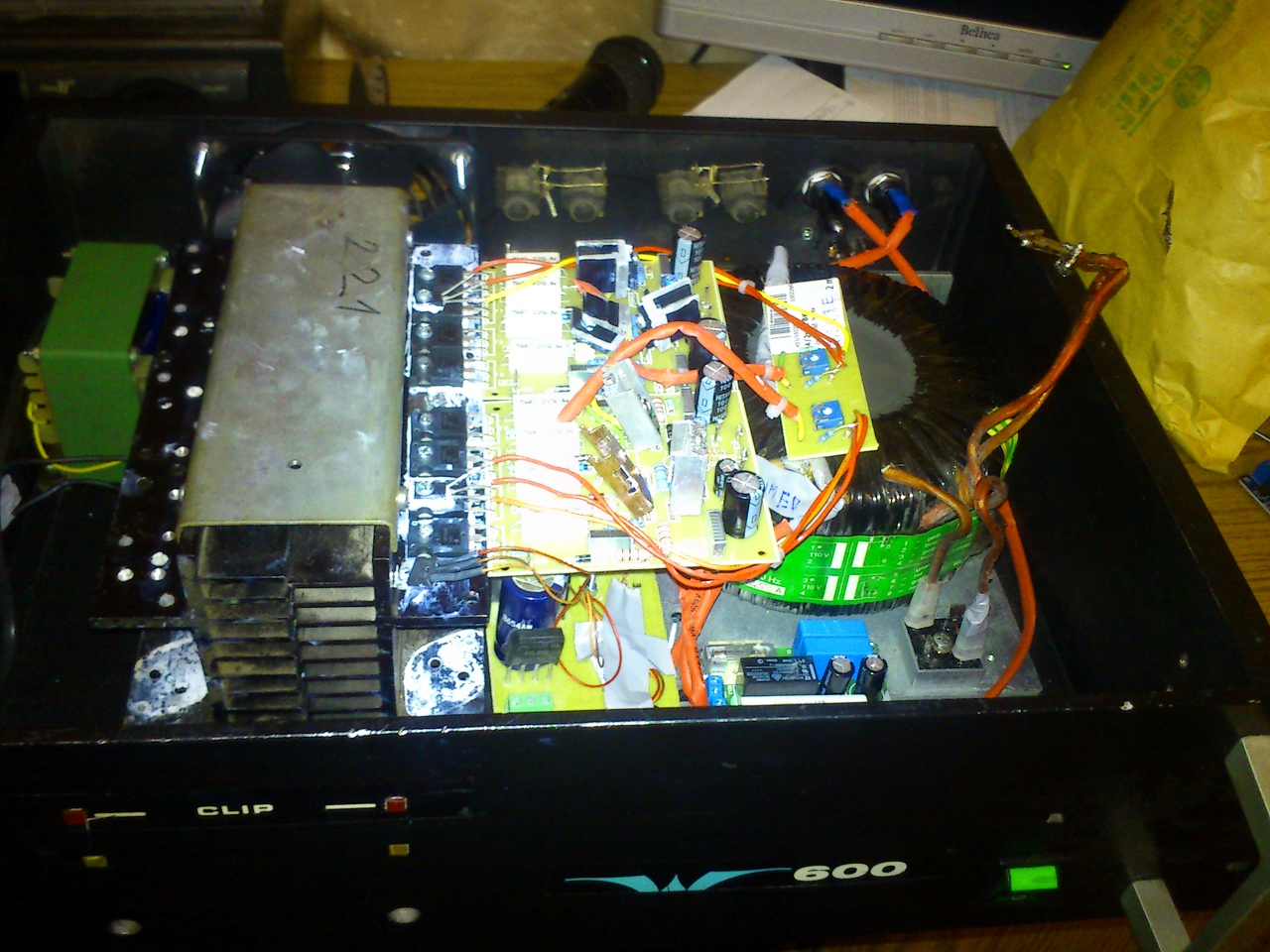 Sziasztok! Ma délelöttől idáig jutottam (Sajna szűkös a hely de azért került bele ventillátorvezérlő egység is, elvileg holnap mehet is a próba,10-10ohm ok előkészítve,szerintetek így hogy áthelyeztem a bordák mögé a lemezes trafót kikerültem hogy megszórja a paneleket? Esetleg a toroid megszórhatja még? Köszi.