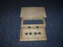 Szóval! A dobozt egyszerű gyalult lécből, bútorépítő lapból, illetve parkettaszegőlécből készítettem. A doboz tetejére és az oldalára használtam a léceket. A tetejének egy 60mm széles lécet használtam, hosszba méretrevágtam, kifúrtam a csövek helyét ezután pedig parkettaszegőléccel körbeszegtem. Ez egy kicsit nehezebb volt mert nem akarta a ragaszó egyszerűen megfogni. Kitaláltam, hogy vékony pozdorjacsavarral odaerősítem a szegőléceket és ezután ragasztóval jó vastagon beragasztózom. Így már sikerült is csak a ragasztás miatt elég sokat kellett várnom. Miután megszáradt óvatosan kiszedtem a csavarokat és egy négyes fúróval kifúrtam a csavarok helyét, oda pedig hurkapálcákat ragasztottam be (ez a mellékelt képen látható). Miután ez is megszáradt, levágtam a kilógó részeket egy kicsit kisülyesztettem a hurkapálcáknál egy fúróval és következett a hibajavítás a fagittelés. Ez az első ilyen jellegű famunkám és azért látható a képen , hogy nem a legpontosabbra sikerült a méretrevágás. Az illesztési hibákat és a hurkapálcák helyeit vastagon kikentem a fagittel megvártam amíg megszárad és jöhetett is a csiszolás. A doboz oldalát pedig 30mm-es lécból készítettem, gérvágóval megpróbáltam "összeszabni" ebbe is ment pozdorjacsavar, de ezt már nem szedtem ki hanem jól besülyesztettem és a fejénél kikentem fagittel. Ezek után csiszolás és festés 4 rétegben. A doboz alja pedig a bútorépítőlapból készült. A végeredményt pedig már ismered. Mégegyszer bocsáss meg, ne haragudj kérlek!