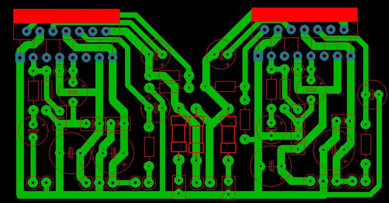 Ez már így sokkal jobb! Annyi még beleférne -bár ha így marad az se gond-, hogy a graetz kocka (-) lábától, ha nézzük az áram útját, akkor egy kissebb "S" alakba jut el a kondik lábaihoz. Ez ha lehet, legyen minél rövidebb és egyenes vonalú. (Ne sok töréssel). De amúgy ugyan ez vonatkozik a felpufferelt tápágakról ( haladó sávra is ) ami a biztosíték felé megy. Mondjuk úgy, hogy nem egy vonalban van az áram útja. Következőképp kéne kinézzen -mindezt egy vonalon (nem kiállásokkal). Graetz - ága, 40V-os kondi - lába bizti,kimeneti csati.