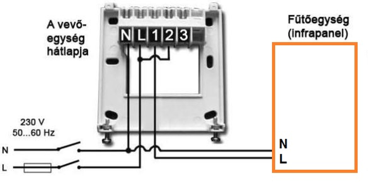"Ha levesszük a régit és szabadon hozzáférhető a 3 vezeték, akkor az N-be a Nullát, L-be a Fázist kössük be. Ekkor marad egy darab vezetékünk árván, ami a kapcsolószál. Ezt kössük be a 2-sel jelölt pontra. Így már kapcsolni fog a vevő, ha az adón felvesszük a hőfokot, de a kazánt még nem fogja bekapcsolni!!! Aztán csinálni kell egy áthidalást! Egy darab vezetékkel össze kell kötni a fázist és az 1-es pontot és máris tökéletesen működik minden!" Akkor ez így működhet gondolom. Ha már valakinek sikerült