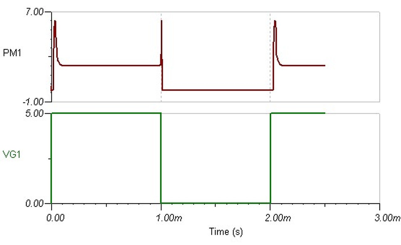 Csak egy kis pelda. Az atkapcsolas alatt a FET-en eso teljesitmenyt abrazolja a diagram. Amikor noveled a kapcsolasi frekvenciat, termeszetesen no a disszipacio. A DC motoroknal (induktiv terheles) nagyon nem mindegy milyen frekirol hajtod, mert magas freki eseten nem tud kialakulni megfelelo aram (Lenz-törvény).