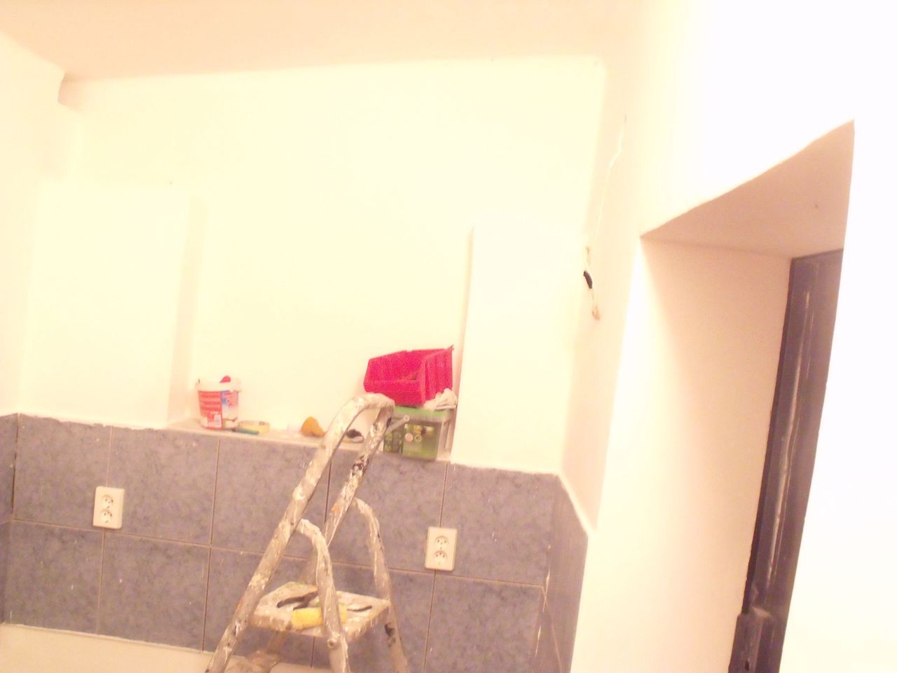 Azért ilyen színes mert mi a lakásfelújításból maradt azokat a festékeket használtam fel..Amúgy ketté van választva így a koszosabb lakatolós munkák lesznek elől a "színesben" mi egy függönnyel el lesz választva ott tisztaság lesz.