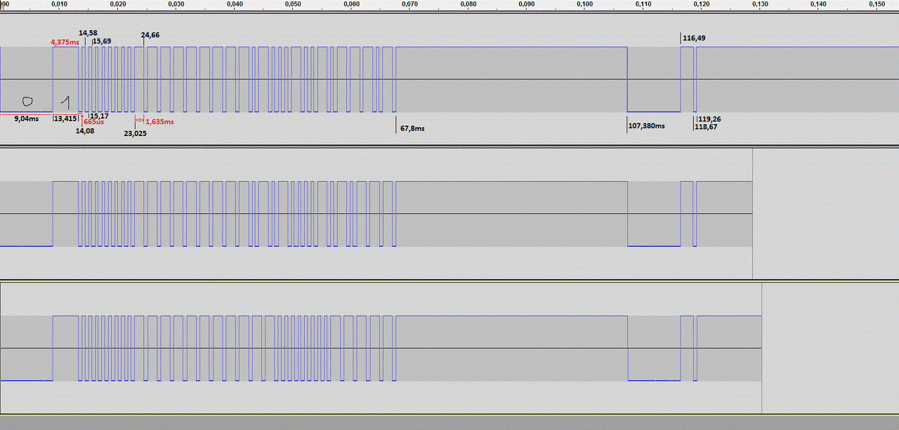 Visszafejtettem az egészet. Jól látható, hogy hexa kód, pontos időzítésekkel.