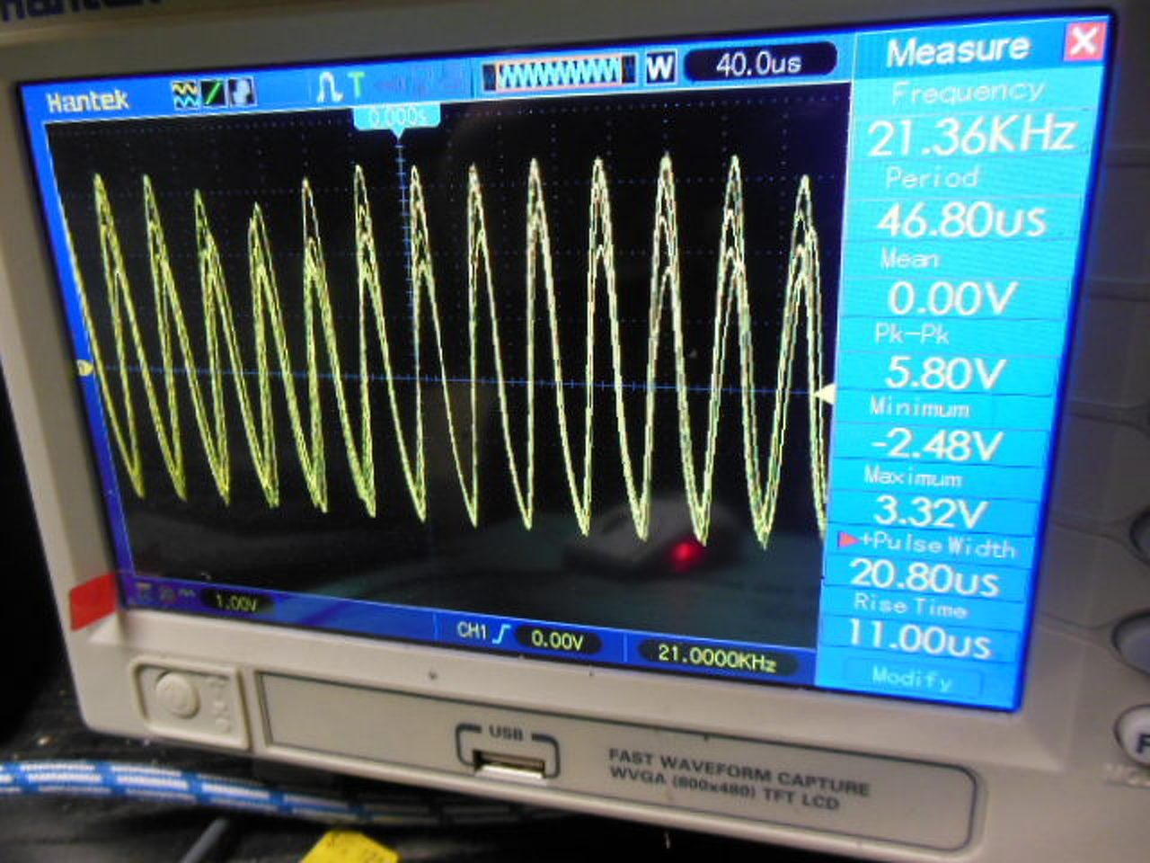 Ezért lenne jó műterheléssel mérni, a hangszóró nagyon bezavar, szkópos mérésre alkalmatlan.