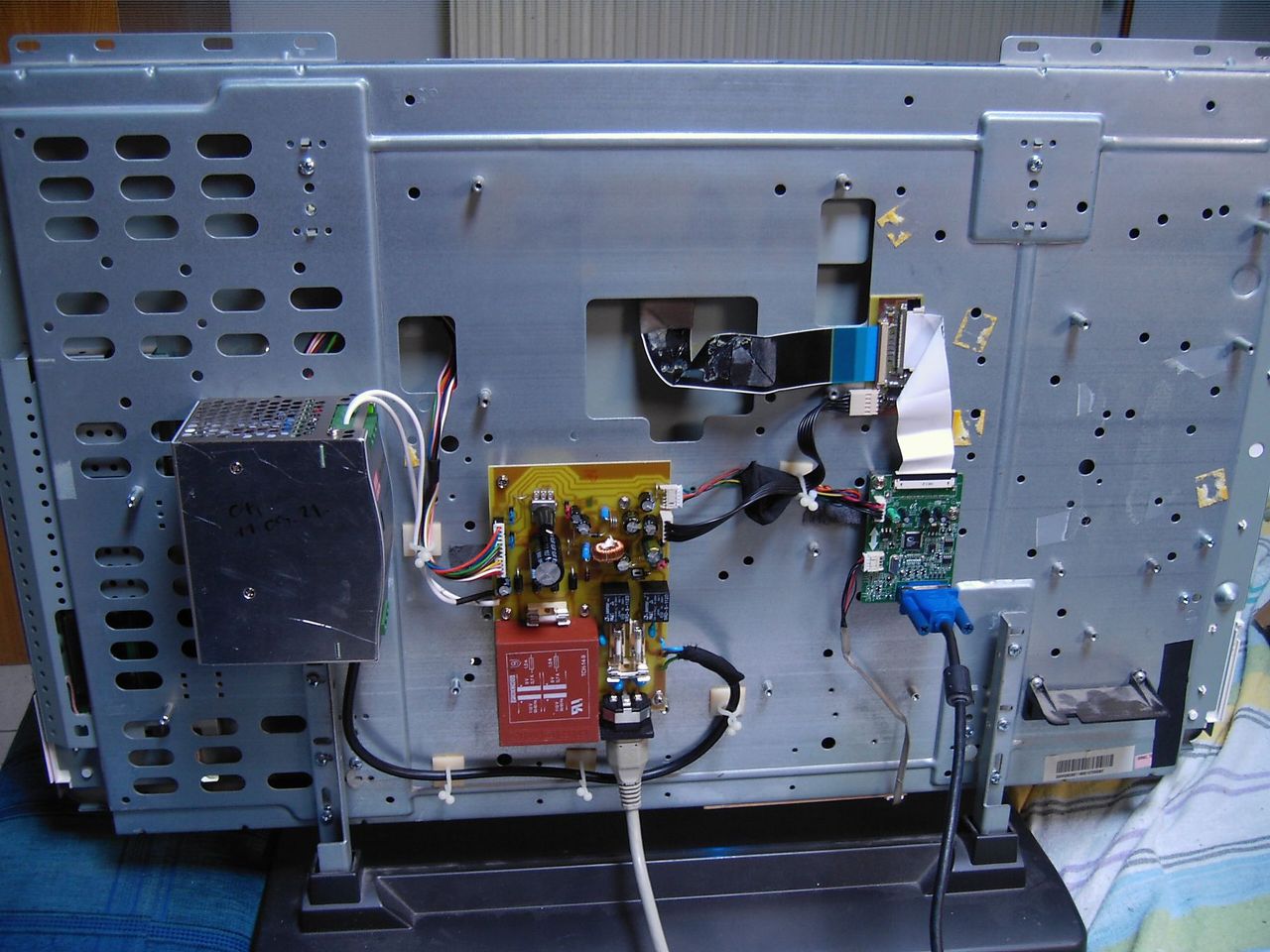 Ez a legutóbb épített monitor hátulja, láthatod, hogy mennyiből ál a táp és mennyi az elektronika ami vezrli.
