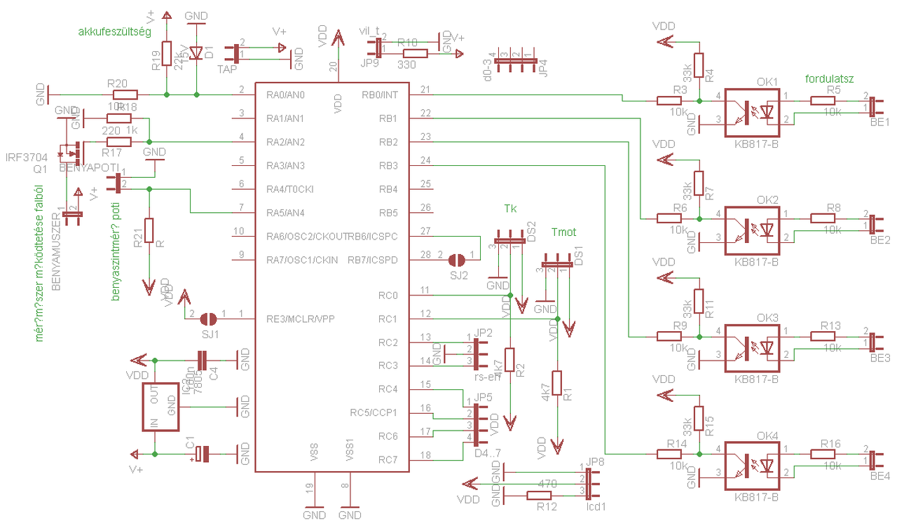 Digitális elektronikában otthon vagyok (logikai kapuk, igazságtáblák, stb.), de analógban és tranyó/MosFet kérdésben teljesen amatőr... Örülök, hogy a MosFet bekötést véletlenül sikerült eltalálnom....Shajna ne tudom, hány Ohmos a mérő ellenállása, de majd lemérem. Úgy méretezem majd az R21 ellenállást, hogy a poti és ekközött mindenképpen 5V alatt maradjon a fesz, ezt meg szépen átszámoltatom a mikivel. Nagyon szépen köszönöm a segítségedet, minden kérdésemre választ kaptam. ![]() ![]()