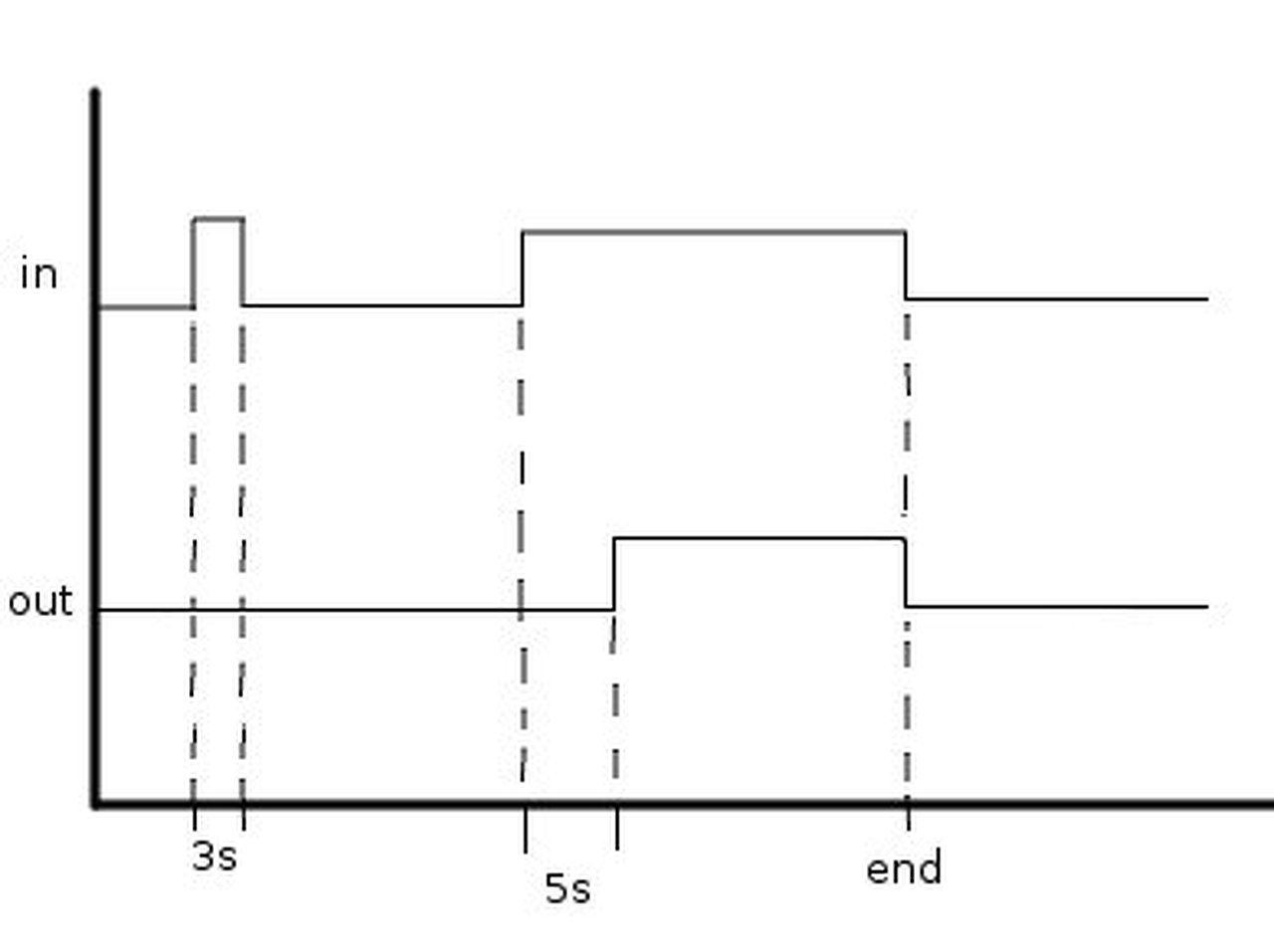 Leszögezném az elején, hogy nem tudok PIC-et programozni de szeretnék egy figyelmeztető rendszert összeállítani. Egy infra kapu jelére kellene ~5s késleltetéssel hangjelzés ami megszünik ha a kapuban nincs semmi. Ahogy a képen is látszik ha az input rövidebb mint 5s akkor nincs output. Ha hosszabb mint 5s akkor is csak az 5s elteltével lesz output és ha az input megszünik, megszünik az output is. hozzáférek 12f675 PIC-hez amennyiben ezt bele lehet programozni.