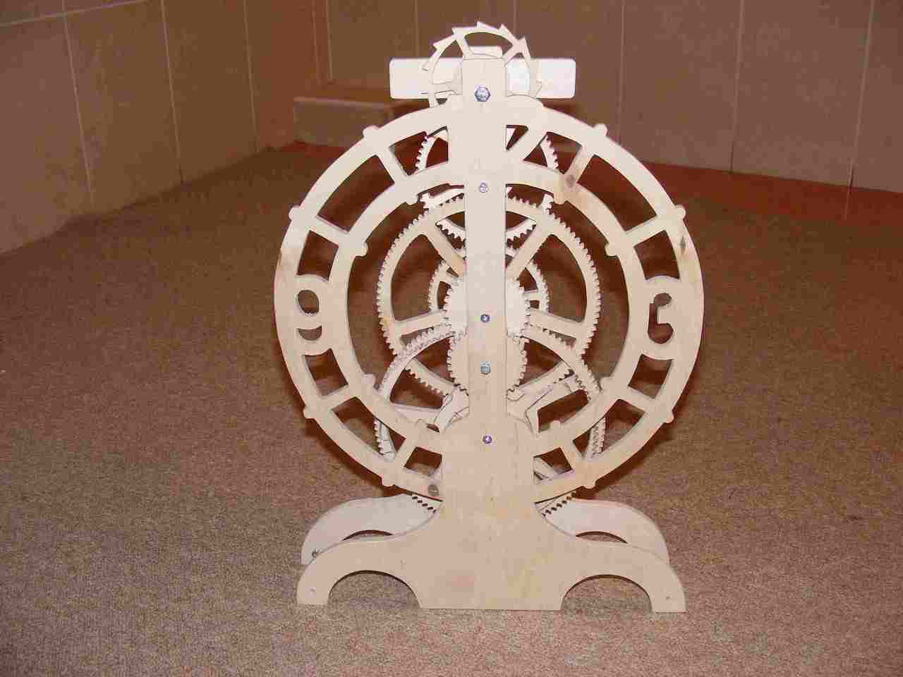 Ide piszokul illene a régi óráknál megszokott súlyos hajtás, mert a gravitáció általában mindig kéznél van, és nem is kerül semmibe. Vélhetően bejönnének pontossági hibák, és a gátszerkezet is egy macerás kérdés, de azért kihívás a feladat, mert van benne nehézség.