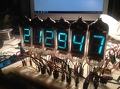Készül egy IV-11-es óra. A képeken jelenleg próbapanelen van, mivel most van a teszt. 2 hét folyamatos működés, hogy minden rendben legyen, aztán mehet a nyák gyártás. Az "elválasztók", IV-15, vagy DM-160 -ra lettek (lesznek) tervezve, mivel ezek pont olyan szinűek mint az IV-11. Sokan ledet használnak, ami eléggé "lehúzza" a kész órát, mivel a led szine, teljesen más mint a csöveké. Ez olyan, mint ha az asszony a kockás felsőjéhez, csíkos gatyát venne. Na de kinek milyen izlése van.