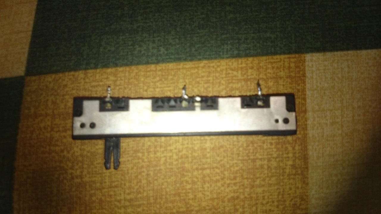 Most még meg kell állapitanod, mogy melyik a poti felsö vége ( egy log potinál ez fontos). Told a csuszkát a poti kb felére. Mérd meg melyik lábtol milyen ellenállást mérsz. Az lesz a közös - földelt vég amelyik kisebb ellenállásu.