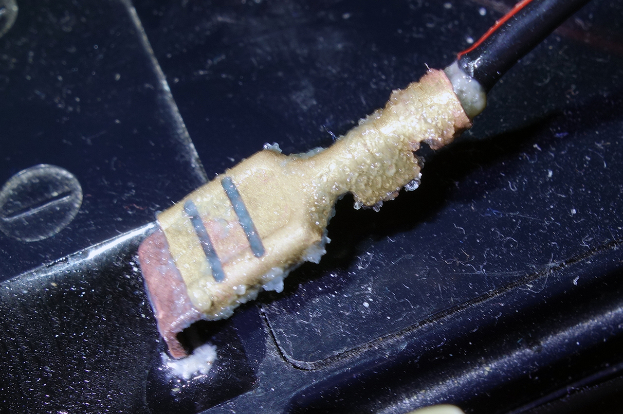 Most ránéztem és vastagon bevonja valami sav és só és a rezet megoldotta a réz sarukon.