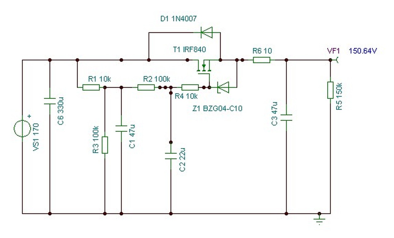 Itt van a rajz, stabilizáltra is átalakítható, ha az R3 helyére 160V Z diódát teszel.