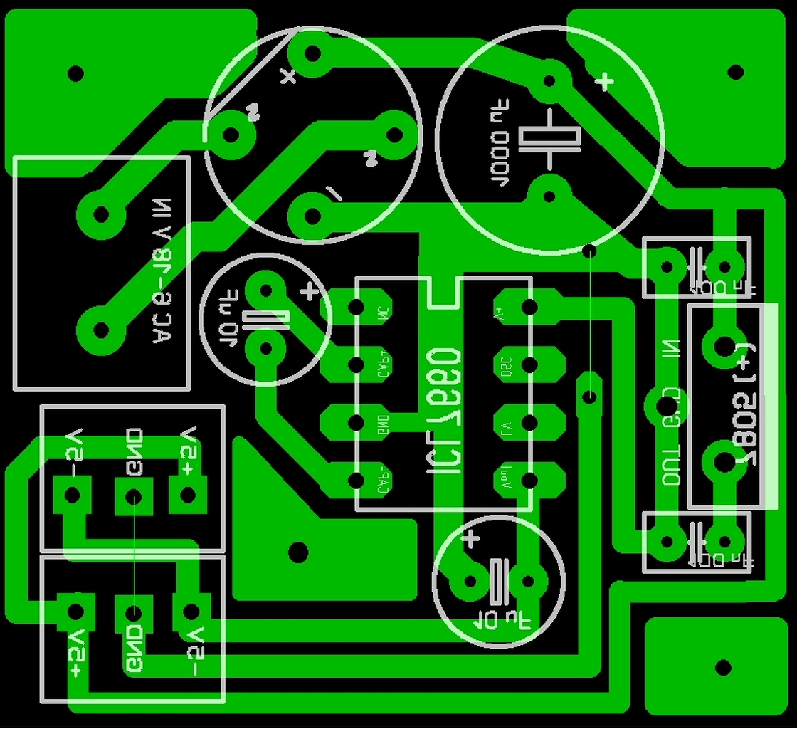 Amúgy az egész konstrukció ott bukik meg, hogy az ICL IC-ből nem sok áramot tudsz kivenni mert ez nem tápegység IC. Ez nem lesz egy igazi + - 5V-os táp.