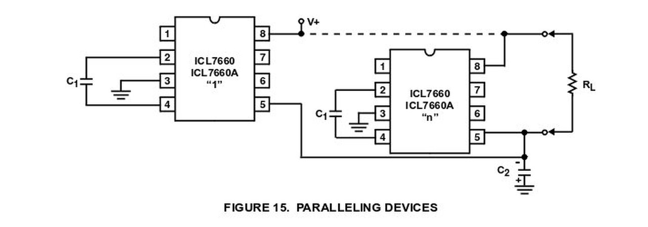 Ez 2 db 7017-et fog táplálni, ha sikerül. Annak a gyári ajánlása a 7660-as IC. Az 1 db táplálásához ajánlja kifejezetten, de van erre az esetre is gyári kapcsolás, amit mellékeletem is, bár számítanék a a véleményetekre, hogy meg fog-e felelni két IC táplálására. Ha igen, akkor még mindig ott a kérdőjel, hogy képes-e két műszer azonos tápról működve egyszerre mérni egy labortápban (áram és feszmérő), mint azt Alkotó felvetette pár kommenttel feljebb.