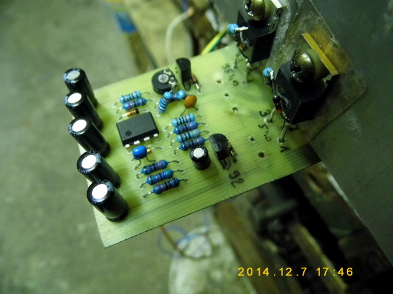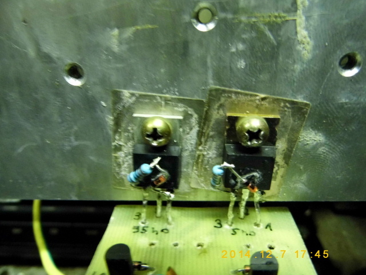A dioda es a vele sorosan kotott 1k-s ellenallas is fel van/volt ragasztva. Csak nem a FET tetejere hanem az elejere.