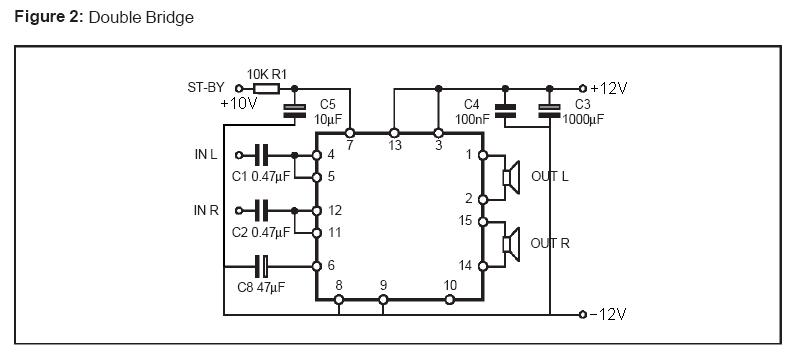 Nagyobb teljesítmény akkor jön ki a készülékből ha nagyobb feszültséget tud szolgálni. Azért van hidalva az IC hogy nagyobb feszültséget tudjon szolgáltatni a kimenetén. De ha még párhuzamba kötsz mégegy ilyen hidalt erősítőt akkkor nem kapsz nagyobb feszültséget (mintha két elemet párhuzamba kötnél), ezért nagyobb teljesítményt.