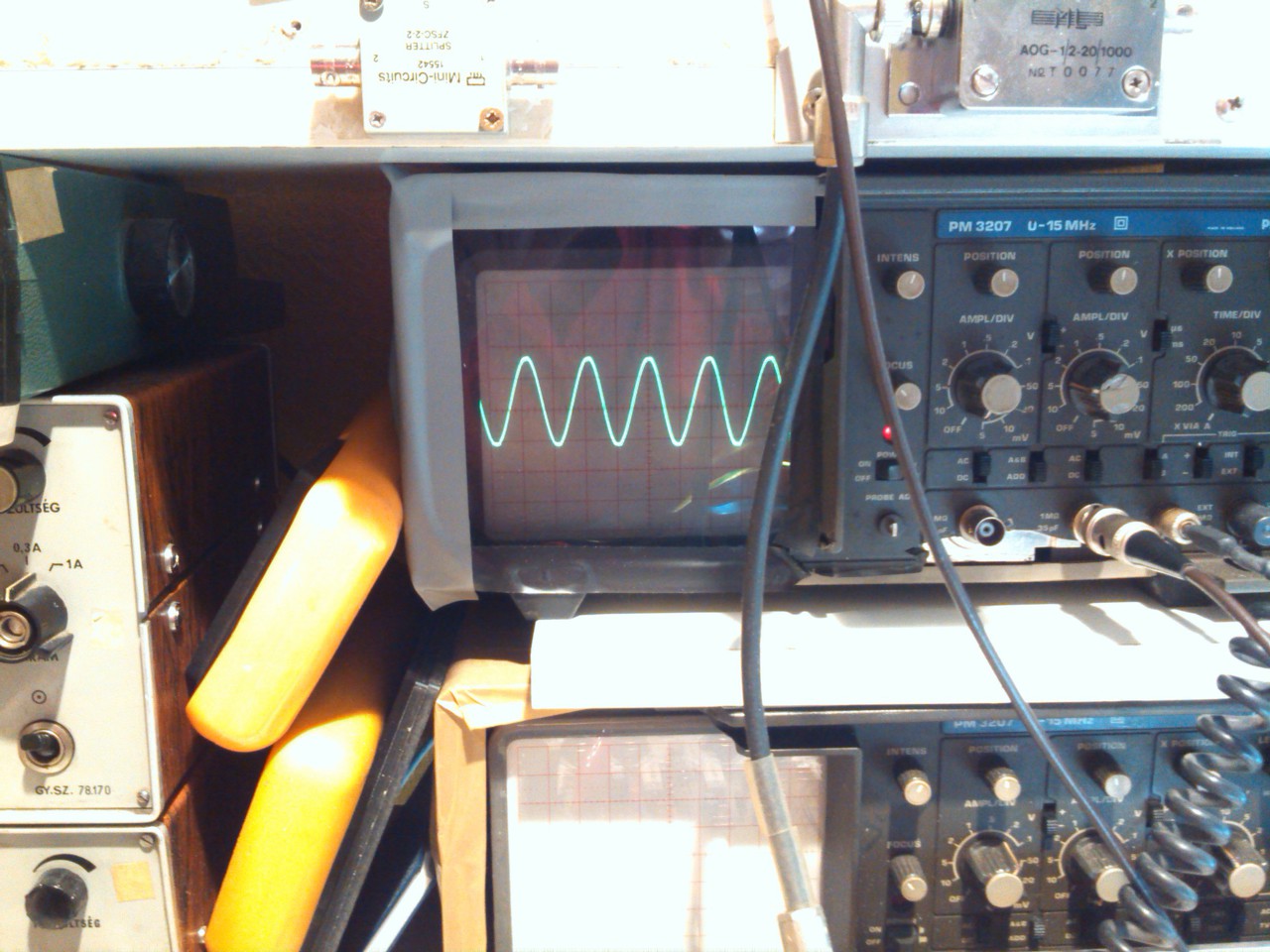 Sziasztok,ma megvolt a félórás "sinus" teszt,2x80vDc feszről amit egy 800w trafó szolgáltatott.Többet nem is akarhatok mint amit kaptam,a müteher az egy 4.5 ohm os 20A régi Mechanikai laboros darab,izzott rendesen.A sinus törés előtt mértem a kimenő feszt.