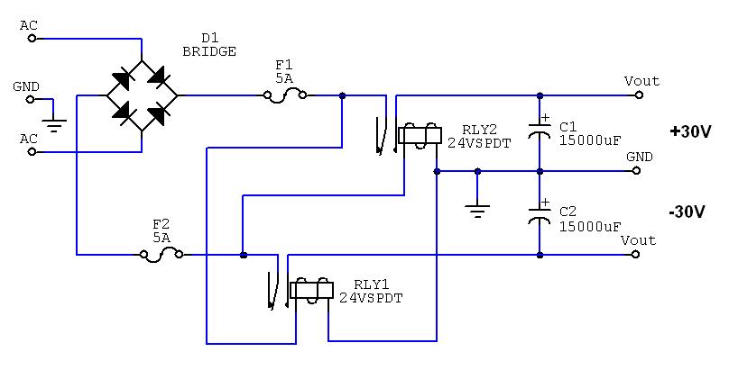 Ha jól tudom audió végfokok (most csak szimmetrikus táp ellátásúra gondolok), a fél tápfeszültséget nem szeretik (sőt talán haláluk is?). Nekem van egy ilyen szimmetrikus táp ellátású erősítőm amiben gyárilag! a szekunder oldalon semmiféle biztosítás nincs (se biztosíték, semmi)! Ezért gondoltam hogy egy ilyen relés kapcsolással, megoldható lenne-e a védelme? Kérdés még továbbá, hogy ha az F1 biztosíték kimegy, akkor a nagy kapacitású puffer kondik meddíg képesek még a relét (RLY1) árammal ellátni? (képesek-e erre egyáltalán?) A 24V-os reléknek a 30V-os tápfeszültség gondot jelent, vagy a relék tápfeszét egy feszültség osztóval csökkentsük?