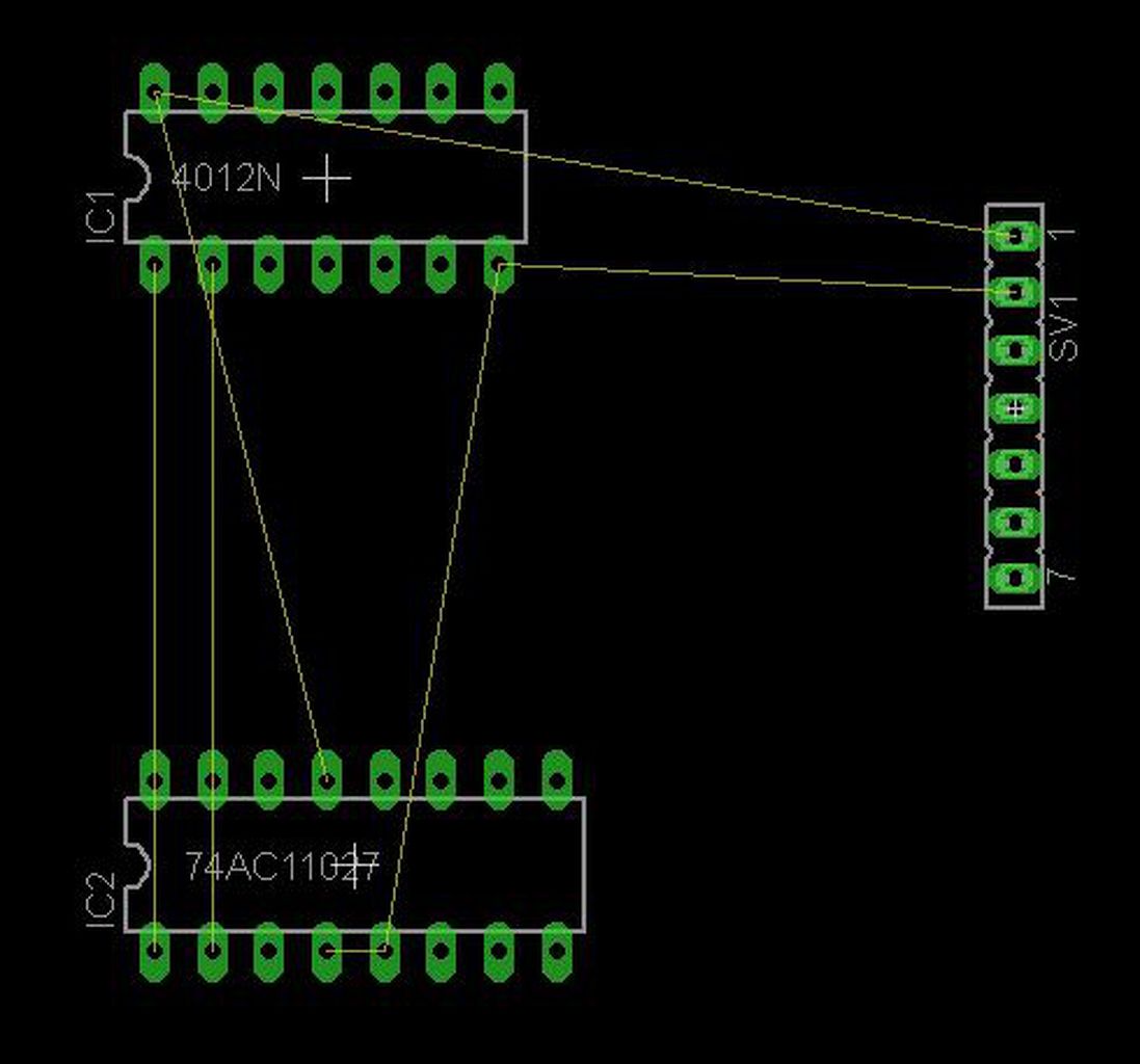 Pontosan ezt tettem, és mégse... A brd fáljban nincs semmi különös. 4 IC, amelyek Vss és Vdd kivezetései nincsenek ábrázolva. A Vdd-ket is természetesen az általad javasoltak szerint jelöltem, azokat rendesen összeköti egymással és a táppal is, az IC-k Vss-eit egymással összeköti ugyan, de nem kapcsolja a GND-hez.
