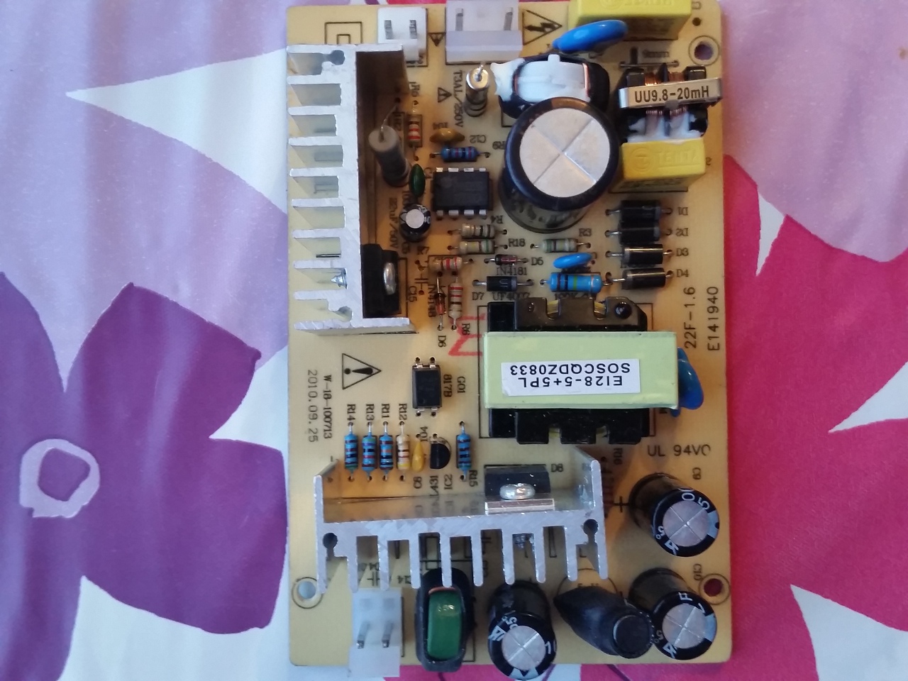 Sziasztok.Remélem jó helyre írok.Kis segítséget szeretnék kérni egy táppal kapcsolatban.Egy bluetooth-os aktív hangfal tápjával van problémám.A hiba jelenség az,hogy egy kikapcs után már nem kapcsolt vissza a készülék.Szét szedtem és az a probléma,hogy a táp out felén nem jön ki semekkora fesz.A panelon van egy kis beforrasztott üvegbizti az nincs kimenve,de amit észrevettem az az,hogy egy 5N60-as tranyó bekapcs után kb. 2 perc alatt elég rendesen felmelegítit a hűtőbordáját.Csatolok képet hogy lássátok milyen tápról lenne szó.Ha van valakinek tippje mi szállhatott el a panelon,azt megköszönöm! Az említett tranyó a képen látható ic felett látható bordára szerelve. Sajnos egy multi-n és egy forrasztó állomáson kívül nincs semmilyen műszerem.Előre is köszönöm a segítséget! Üdv:Ato01