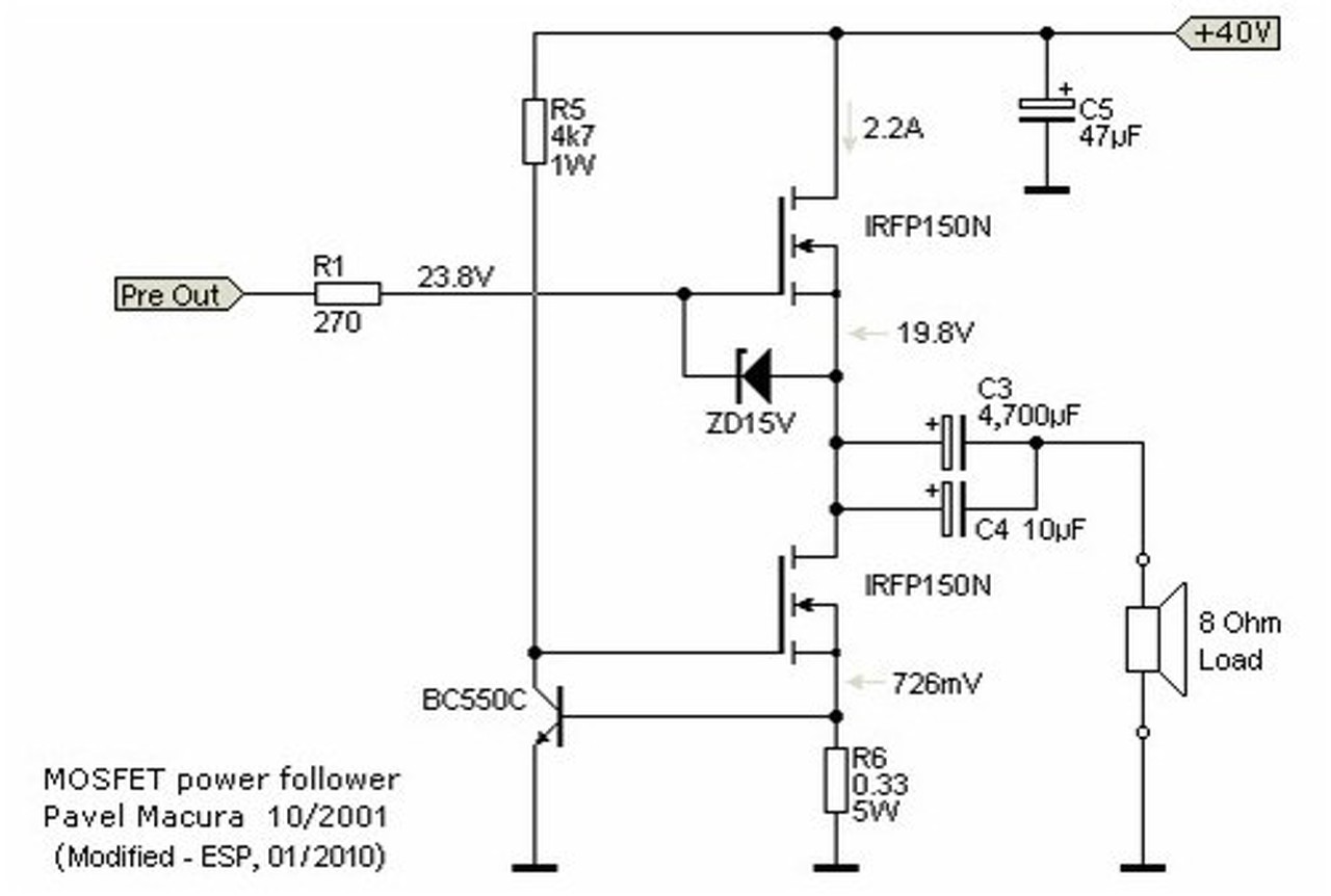 Sima anód követős előfokkal ecc3 al szerettem volna megépíteni ám jött egy kis gond... Össze raktam pókba mert ez egy olyan projekt amire csak itthon hevernek az anayagok és hogy el legyenek használva...A bc-t helyettesítettem 2sc 2240-el... A probléma az, hogy ha a rajzon szereplő kapcsolás van össze rakva akkor semmi nem történik nem nyitnak a fetek. Ha viszont a zenert át kötöm s ről d re akkor szól meglhetősen szépen de akkor az alsó fet iszonyatosan melegszik és nagyon gyorsan... Nem értem mi lehet a baj, mert tuti jól raktam össze...