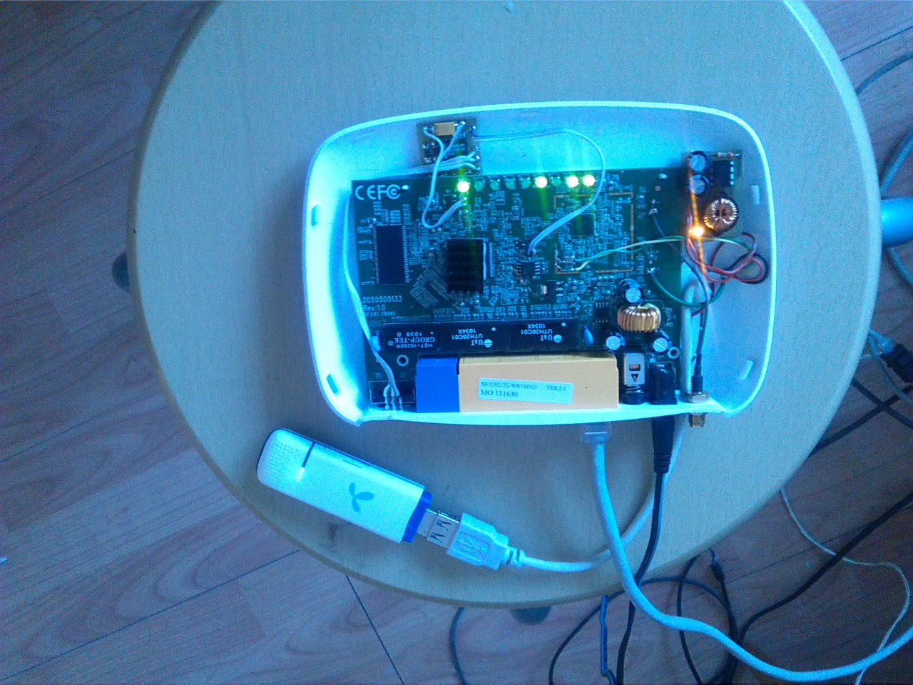 Szeretném bemutatni a művemet. Egy kis router tuning. Egy TL-WR741-es routerre készitettem USB és soros prtot. Az USB mobil stick-hez kellet, a soros egy másik alkalmazáshoz. A felvételek lehet, hogy nem a legjobbak, de a mobilom csak ennyire képes.
