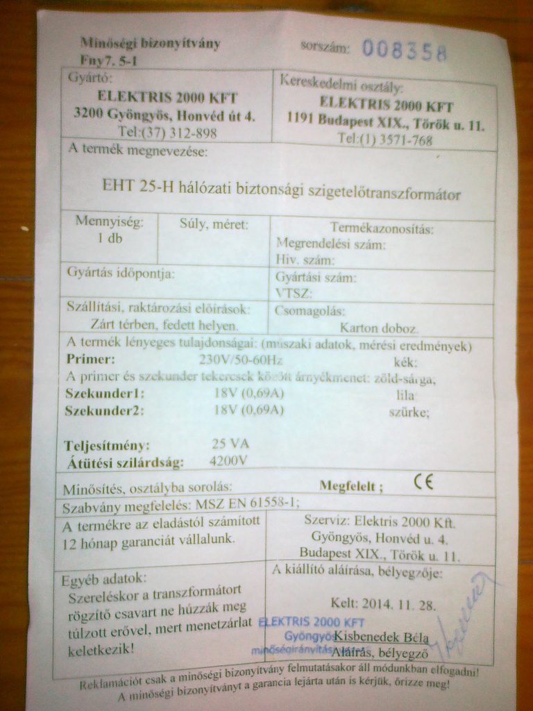 A mérésedben nem lehet hiba? Az Elektrisz egy jó hírnevű cég, minden trafót egyenként bemérnek átadás előtt (rendszeres vásárlójuk vagyok).
