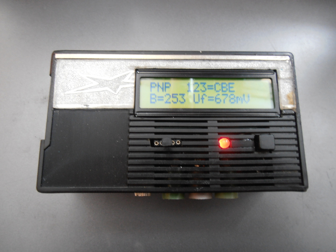 Be szertenem mutatni a legutobbi muvet, egy AVR-es tranzisztortesztert. Egy regi radio dobozaban kapott helyet, tokeletesen mukodik.