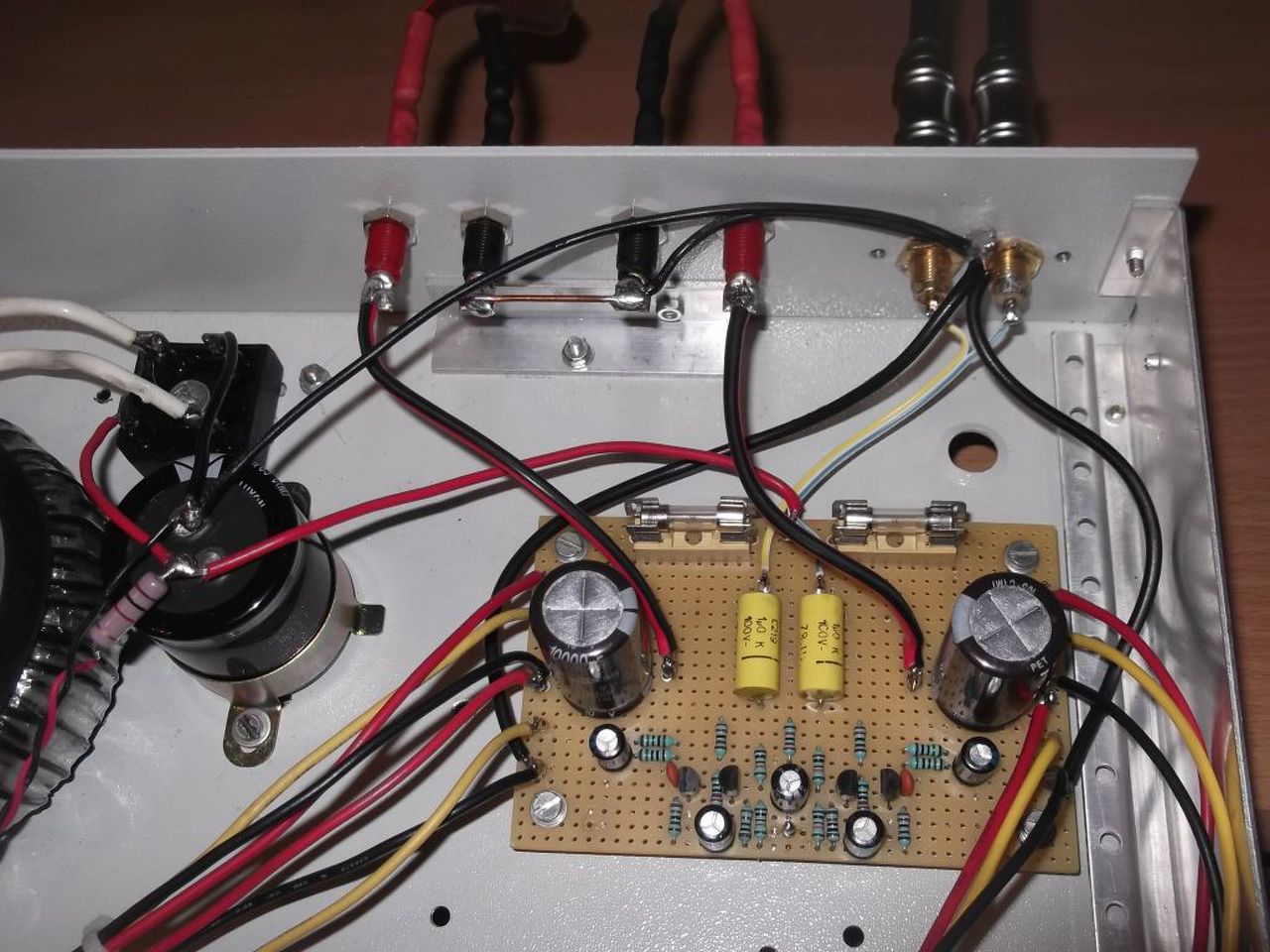 Szép az erősítőd. Mekkora a tápfesz és a nyugalmi áram. Régebben én is építettem ilyen dióda/tirisztor bordákkal. Nekem nem bizonyult elégnek. Lassan de biztosan felmelegedett.