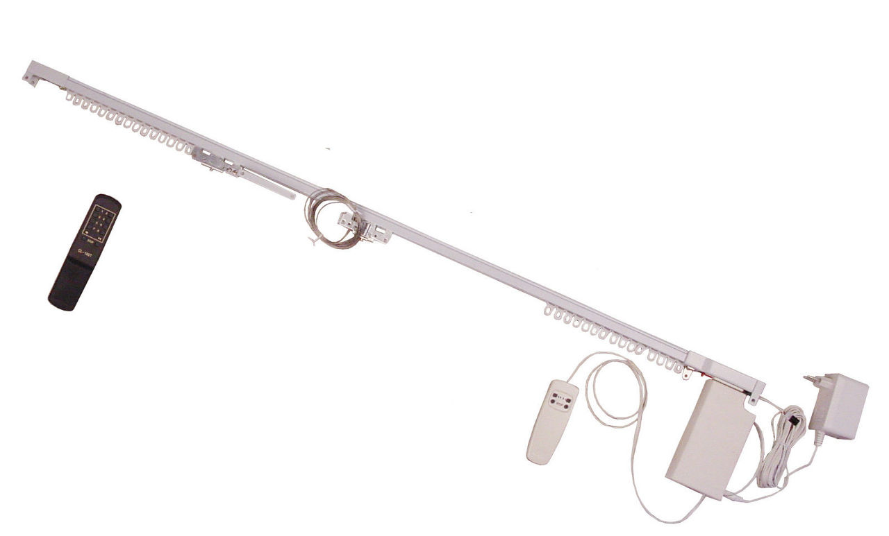 Én egy régi videó csigás hajóművét termeltem ki. A hajtómű másik vége kb. 3-4 cm -es ékszíj tárcsa van a karnis egyik végén ugyan olyan átmérőjű ékszíj tárcsa a másik végén rugós rögzítéssel. Rugós rögzítés a feszítés miatt van. Spárgával fűztem össze amit az első csipesznél kötöttem meg. Nálam két nyomógombbal körülbelül 2 éve üzemel. Üdv.