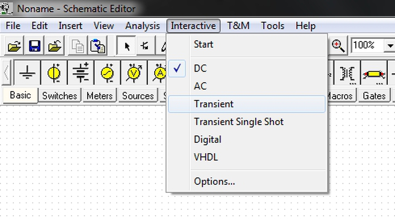 A basic csoportban rögtön a harmadik a telep, de mellette jobbról balról ott vannak az egyen és váltakozó feszültségű generátorok, amiknek a feszültsége tetszőlegesre állítható, a teleppel együtt. Csatoltam néhány képet amin látszik hogy hol van az analízis menü, hol vannak az alkatrészek amikre még név szerint is lehet keresni, és - bár a 21. században az embernek hála Istennek már nem kell velük foglalkozni - de még csövek is vannak.