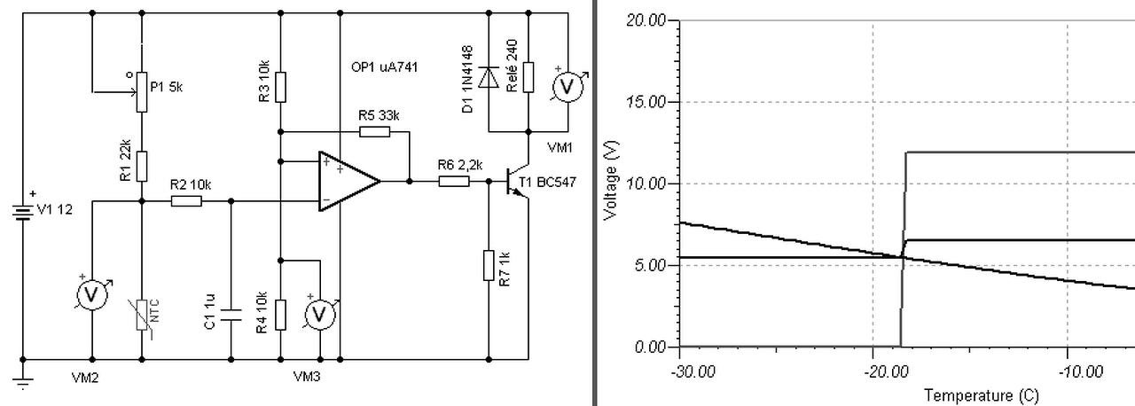 Még egy dolog lehet... nagy a hiszterézis..- lehet, hogy 1 voltnál is nagyobb fesz kell, hogy át-vagy visszabillenjen a kimenet.. - növeld meg a visszacsatoló ellenállást 100-220k-ra és úgy próbáld először trimmerrel.. addig a fagyót ne is kínozd. Ha úgy már le tudod ültetni a kimenetet és el is ejt a relé, már csak spécizned kell a tényleges hőfok körül.