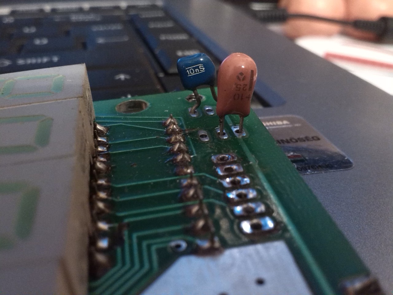 Csináltam egy kapcsolási rajzot a kijelzőről. Remélem jól csipogtattam vissza. A rajz minőségéért elnézést kérek, kicsit mórickás lett. Ha nem átlátható, akkor lerajzolom normálisan is. A két kondik értékét egyenlőre nem tudtam megállapítani, ezért nem is írtam be, valamint a digit kijelzők lábait nem rajzoltam mind be, mert akkor nagyon kusza lenne.