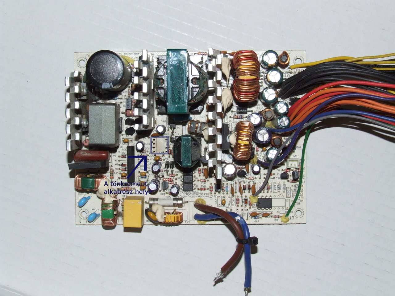 Sajnos, a fiam tápja kilehelte a lelkét. A tönkrement alkatrész egyértelmű, mert szinte felrobbant. Pont ezért, viszont nem tudom beazonosítani. A táp típusa alapján nem találtam semmi érdemlegeset a googl-el, de ilyesmit nem szoktam keresni. Talán nem jól csinálom. Ha valaki tud bármilyen infót (mi lehet az alkatrész, hol keressem a neten a típus alapján, esetleg valaki ránéz, és rutinból tudja mi az , szóval, bármilyen segítségért hálás vagyok.