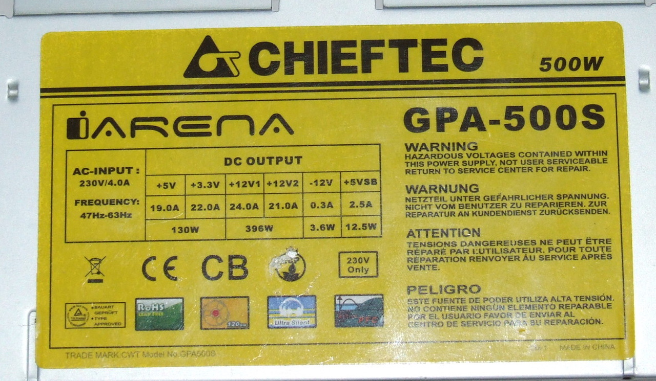 Chieftec GPS-400AA-101 A típusú tápom megadta magát. A +5Vsb (2A) ágról eltűnt a delej.