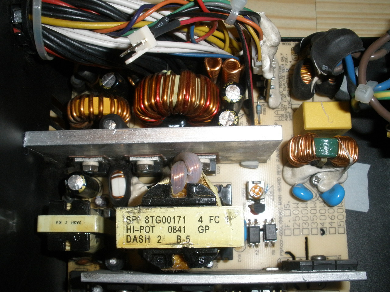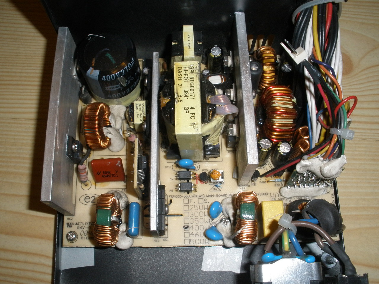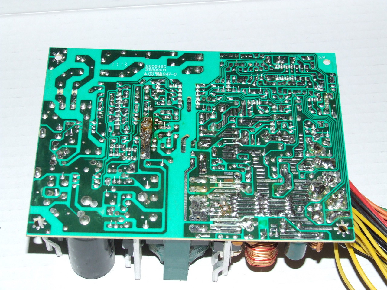 Ez a tápegység tartósan túlmelegedett (gondolom addig használták a beállt ventillátorral, amíg csak ment). Ha nincs ESR mérőd, az összes kondenzátort ajánlatos lenne cserélni - és reménykedni hogy egyéb baja nem lett.