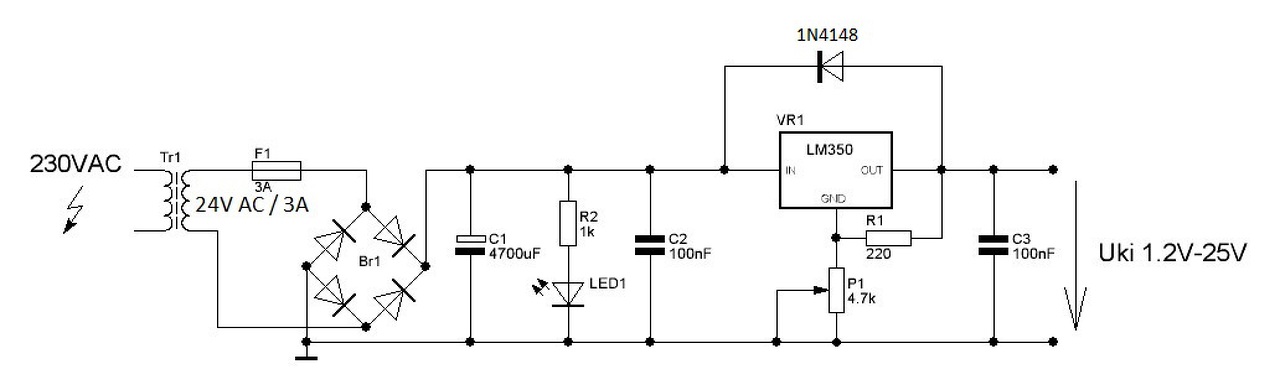 Szerintem az LM350-ben van áramkorlát, akkor pedig a bizti nem megy sehova