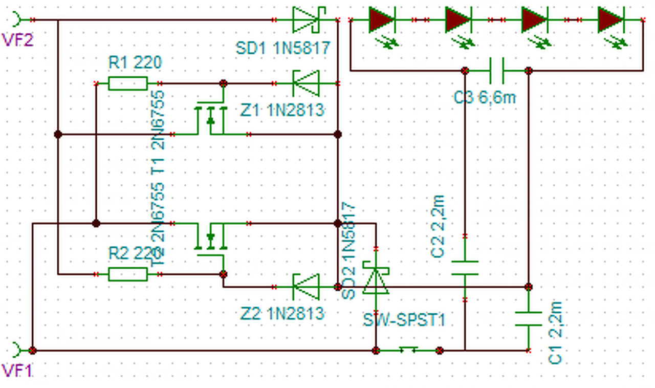 Lenne értelme Skory oldalán lévő utolsó 2 verzió egyesítésének? És azt így kéne? Az értékek ugyanazok lennének, csak nem tudtam olyat berakni. Vagy lehet jobb lenne IRLR8743, és MBRF20H100CT. És a kapcsolót nem lehetne valahogy automatizálni, hogy ha 12V alá megy, akkor zárjon? Vagy át kéne hidalni egy ellenállással, hogy akkor is világítson, ha a kapcsoló nyitott, de lassan megyek?