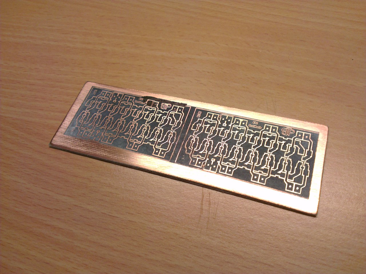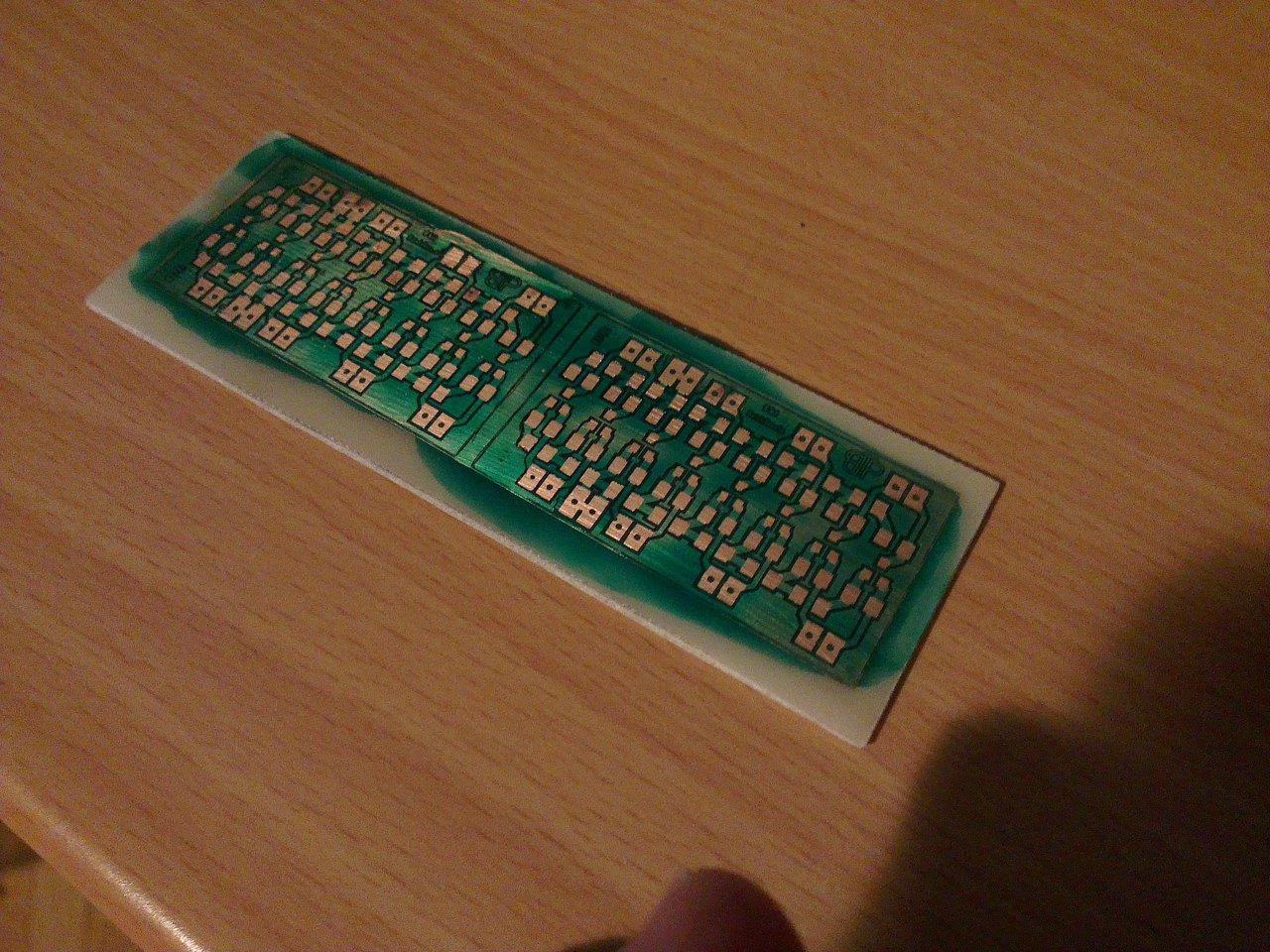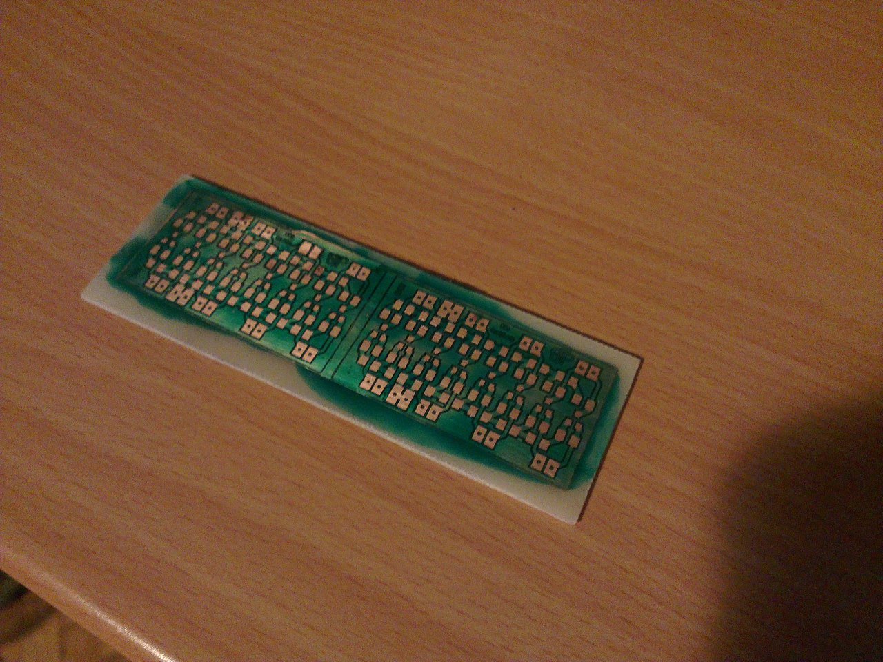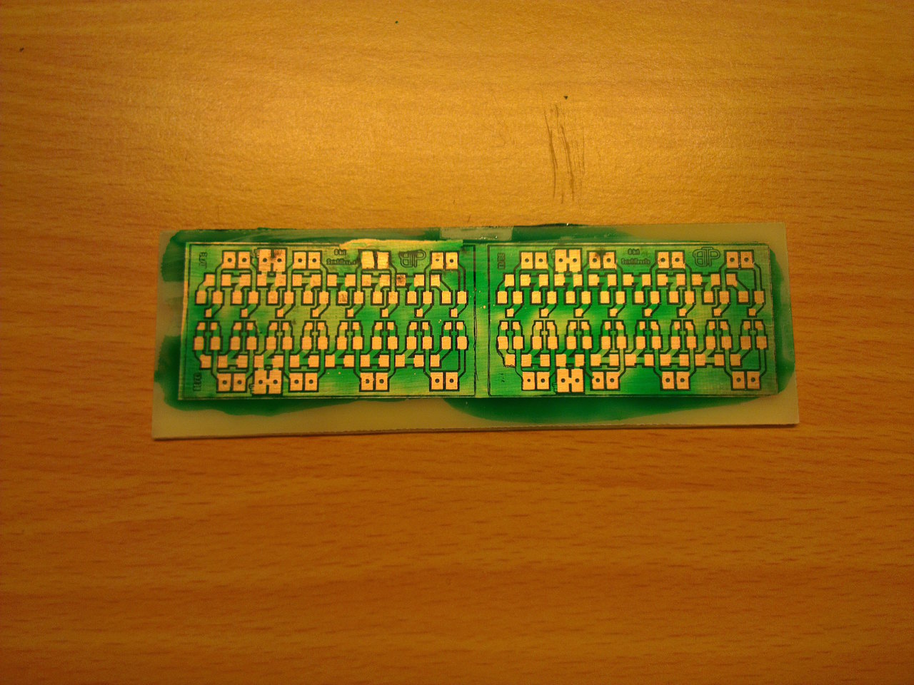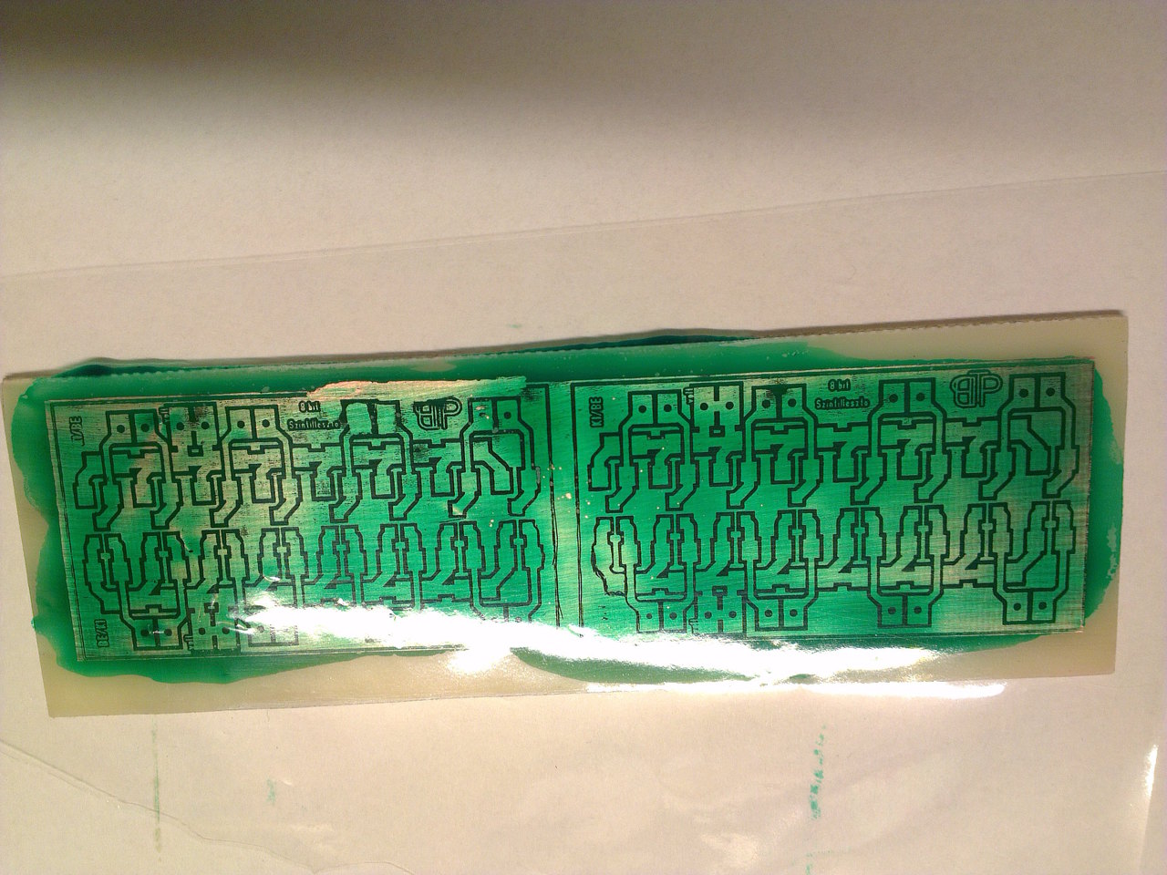 Na de nem ezt akartam, hanem azt, hogy a sósavas marató 2 oldalas nyáknál míg marta a felső félig üres területeket, addig az alsó teliföldes réteget szépen alámarta. Pedig olyan szépen sikerült levilágitani. 0,2 es vonal is van rajta. Holnap lesz nátrium perszulfátom azzal elvileg (talán) jobb lesz. Viszont amit nemértek (anno volt itt valahol egy cikk, de nemtalálom), hogy konstans 40 fokon kell tartani a maratót amíg dolgozik?