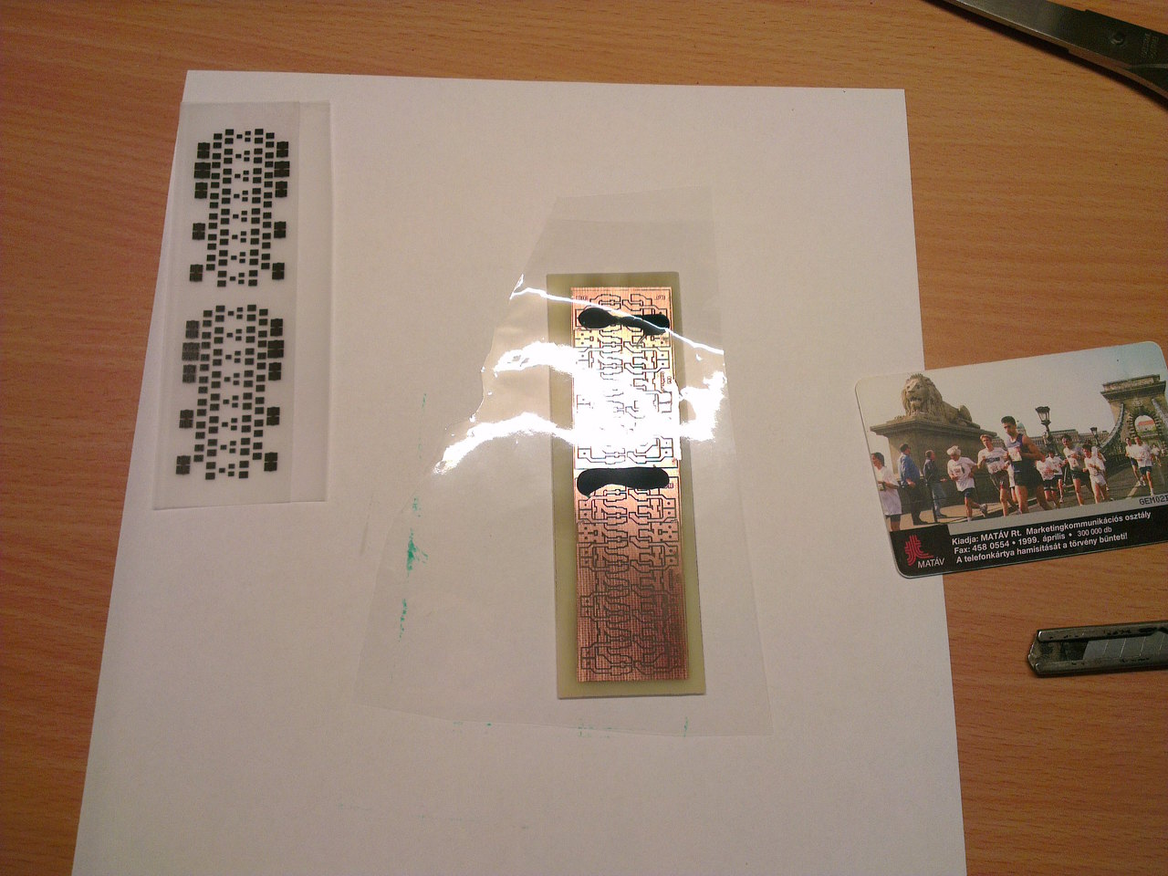 Itt érdemes megjegyezni, hogy a mask filmet érdemes picivel nagyobbra vágni mint a nyák hasznos széle, hogy a kapton szalag ne takarja ki az esetleges még szükséges UV pasztával bevont területeket.