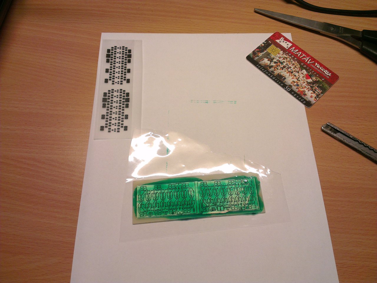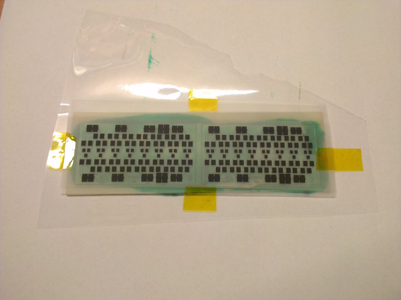 Ezt a mask filmet ráhelyeztem a nyákra és pontosan beállítottam a szükséges fedéseket, majd pici kapton szalagcsíkkal rögzítettem a vékony kis fóliához. ( ami közvetlen érintkezik a pasztával )