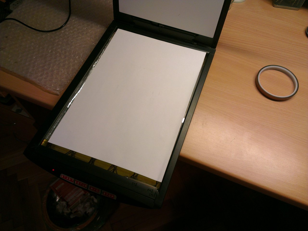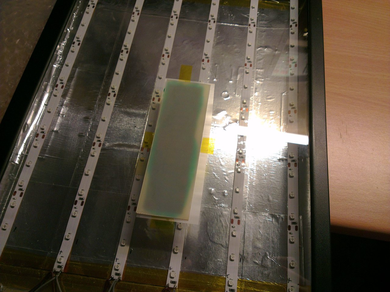 Ezután behelyeztem a levilágítóba és egy fehér sima A4-es lapot helyeztem fölé, hogy minél jobban visszaverje az UV fényt.