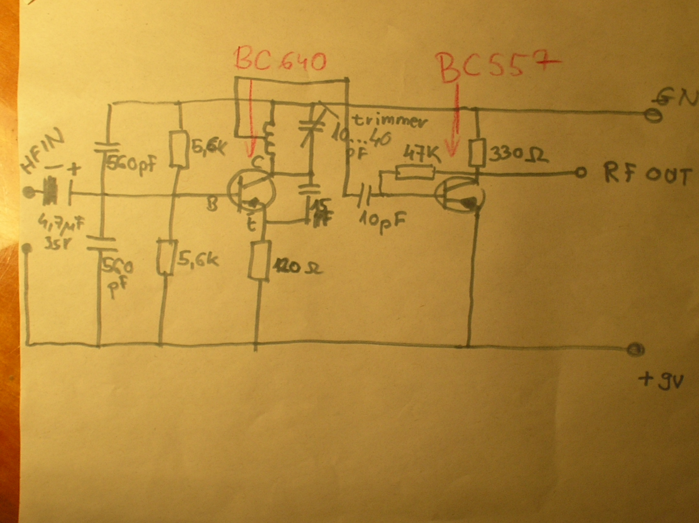 CCIR sávra mezei tranzisztorokat is használhatsz, pl BC108/107/109/182/184...stb ezekkel is berezeg az oszcillátor, legfeljebb kisebb amplitudóval mintha célzottan "rf" tranzisztort használnál. Esetleg lehet próbálkozni a BFR sorozattal de azok meg több GHz határfrekivel rendelkeznek tehát sok felharmonikusod lesz.