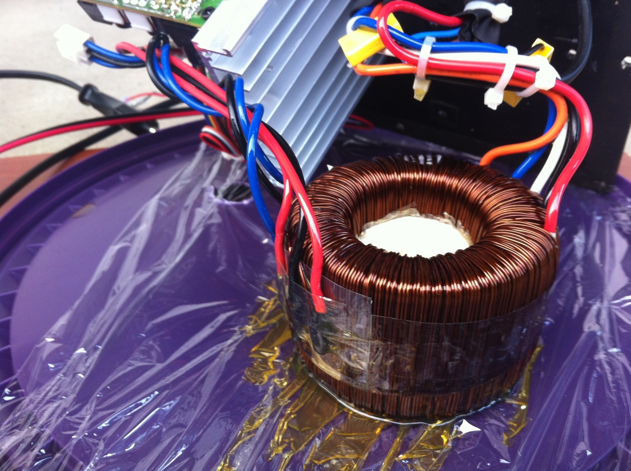 Meg kellett volna nézni hogy melyik tekercs mit szolgál ki, illetve áramfelvételt kéne mérni. Nagyon nem értem miért van rajta 2x17V és 2x15V külön. Lehet hogy az utóbbi csak gyengeáramú, és azt a feladatot akár egy olcsó nyáktrafó is ellátná (kb. 1500Ft). Akkor már csak egy 2x17V-os toroidot kellene venni, vagy csináltatni.