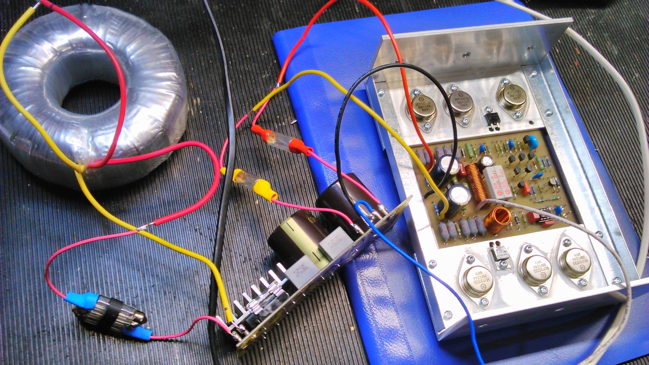 Tavaly láttam egy román srácnál kétféle nyák kialakítást, az egyik hosszú volt és minden tranyó egy sorban volt rajta, a másik hasonló ehhez, de nem a nyák mellett voltak a tranyók (műanyag tokosak, MJL-ek) hanem alatta, tehát közvetlenül egyetlen összefüggő hűtőfelületre szerelhetően, minden idom vagy fül közbeiktatása nélkül. Nem volt nálam még a telefonom sem hogy lefényképezzem, meg annyira nem is érdekelt. Ha esetleg érdekel csinálok róla egy skiccet hogy hogy nézett ki.